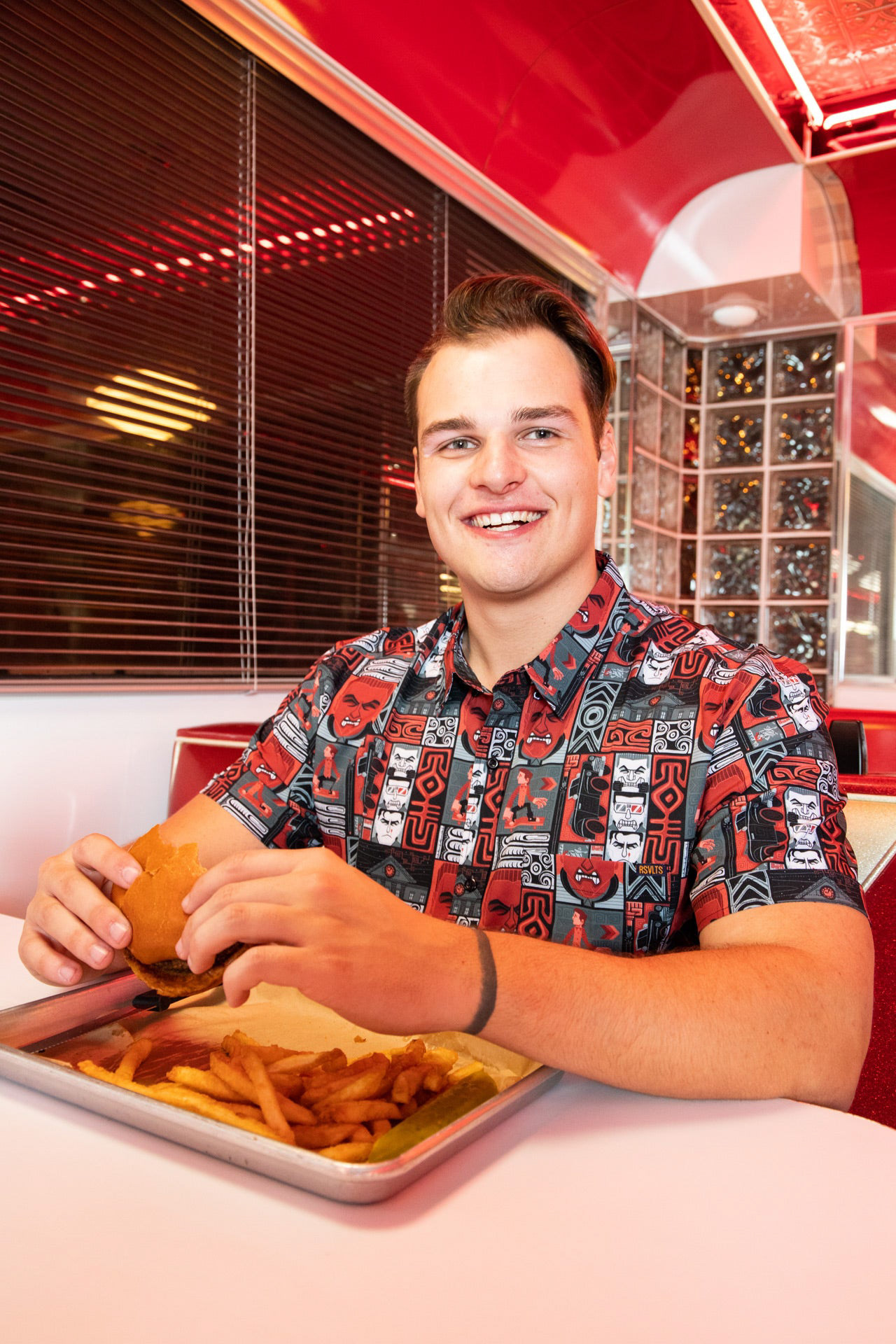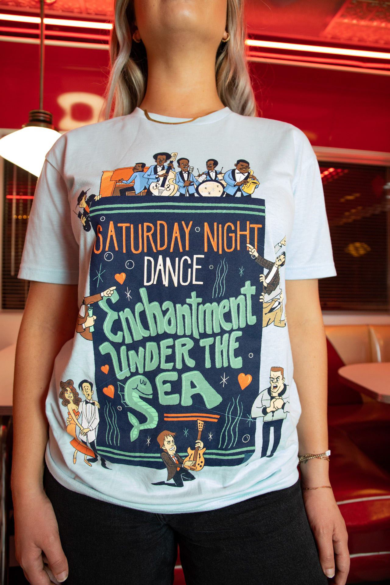 Officially licensed apparel from the Back to the Future Collection for RSVLTS. Inspired by the shirt Biff wears in part 2 and the Enchantment Under the Sea Dance. Marty McFly, Doc Brown and Biff Tannen never looked this good before!