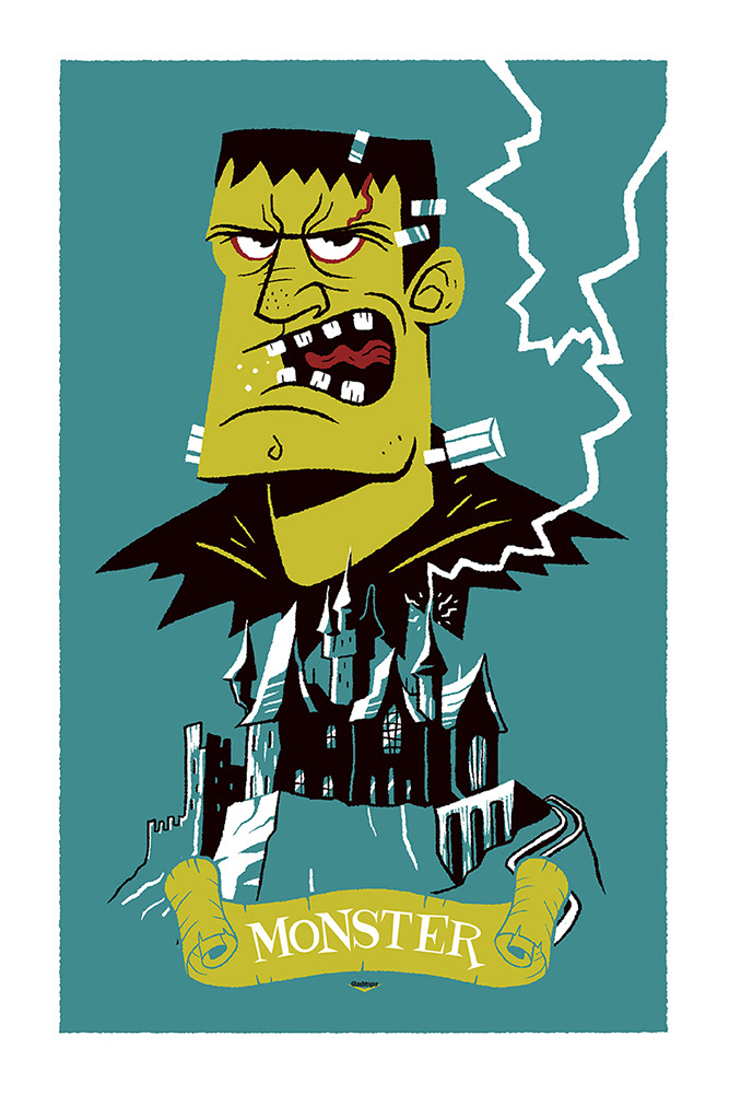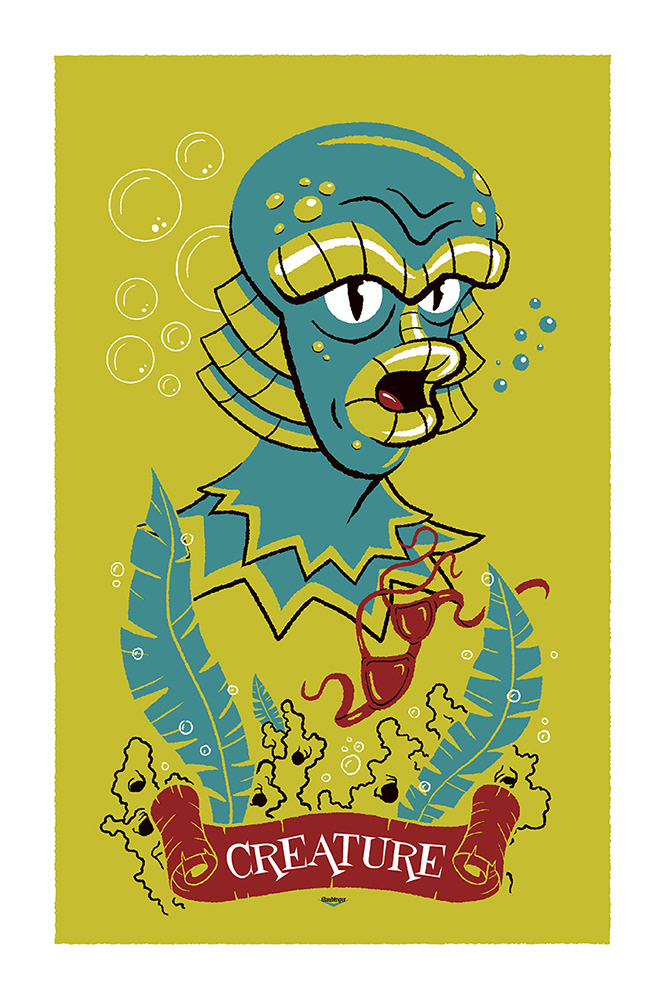 A personal project inspired by the classic monsters of yesteryear. Each poster is 12"x18" 3 or 4 color screen print.