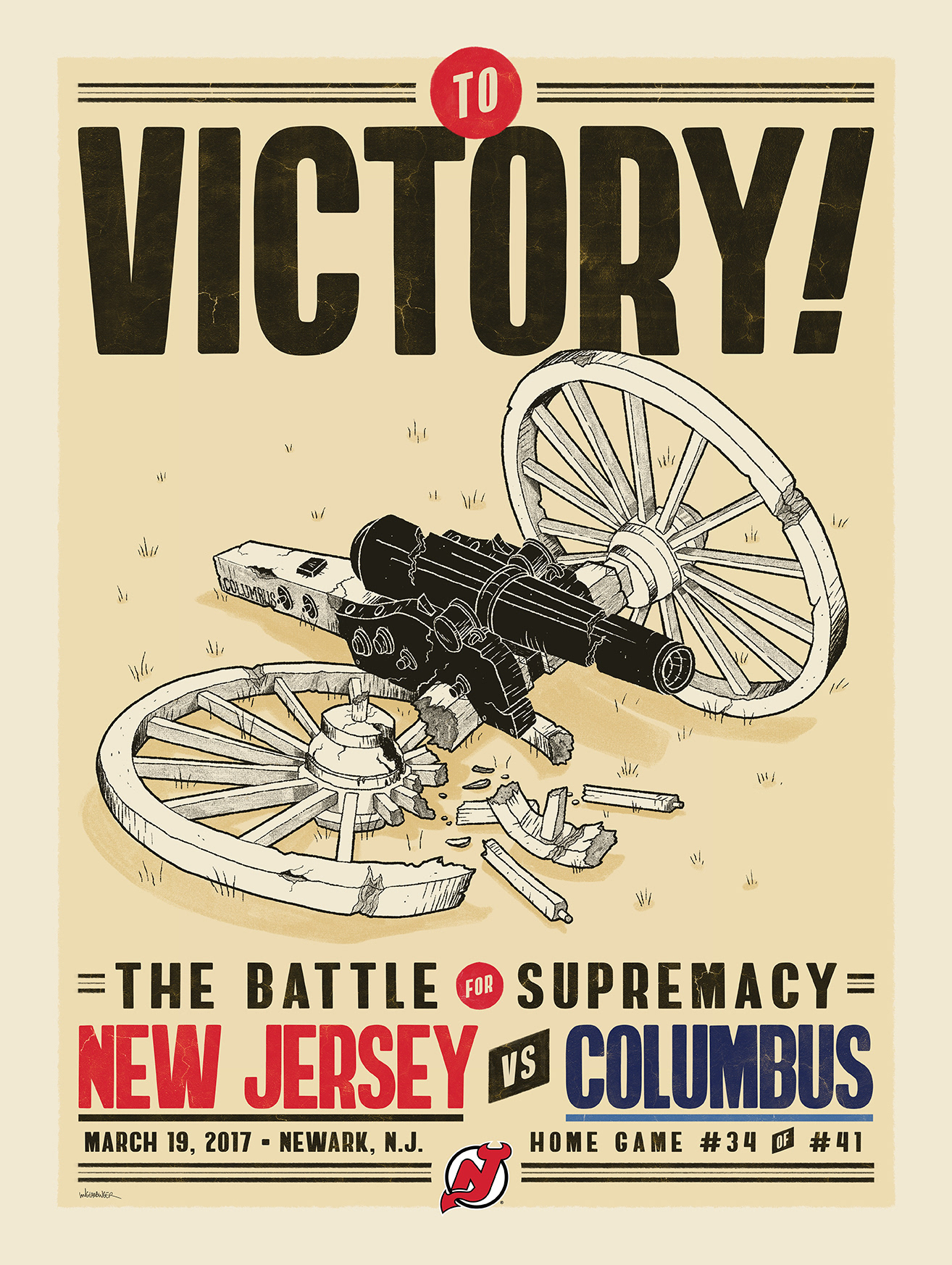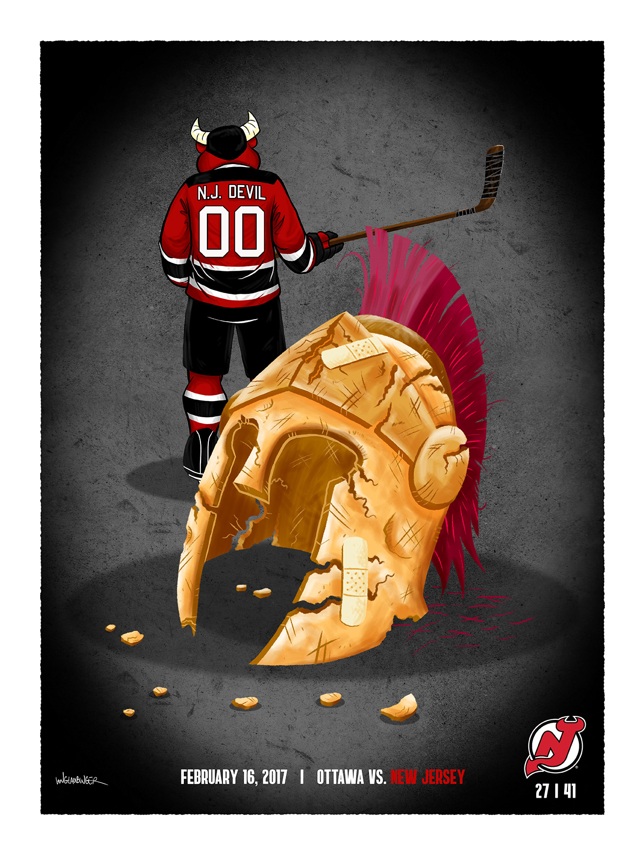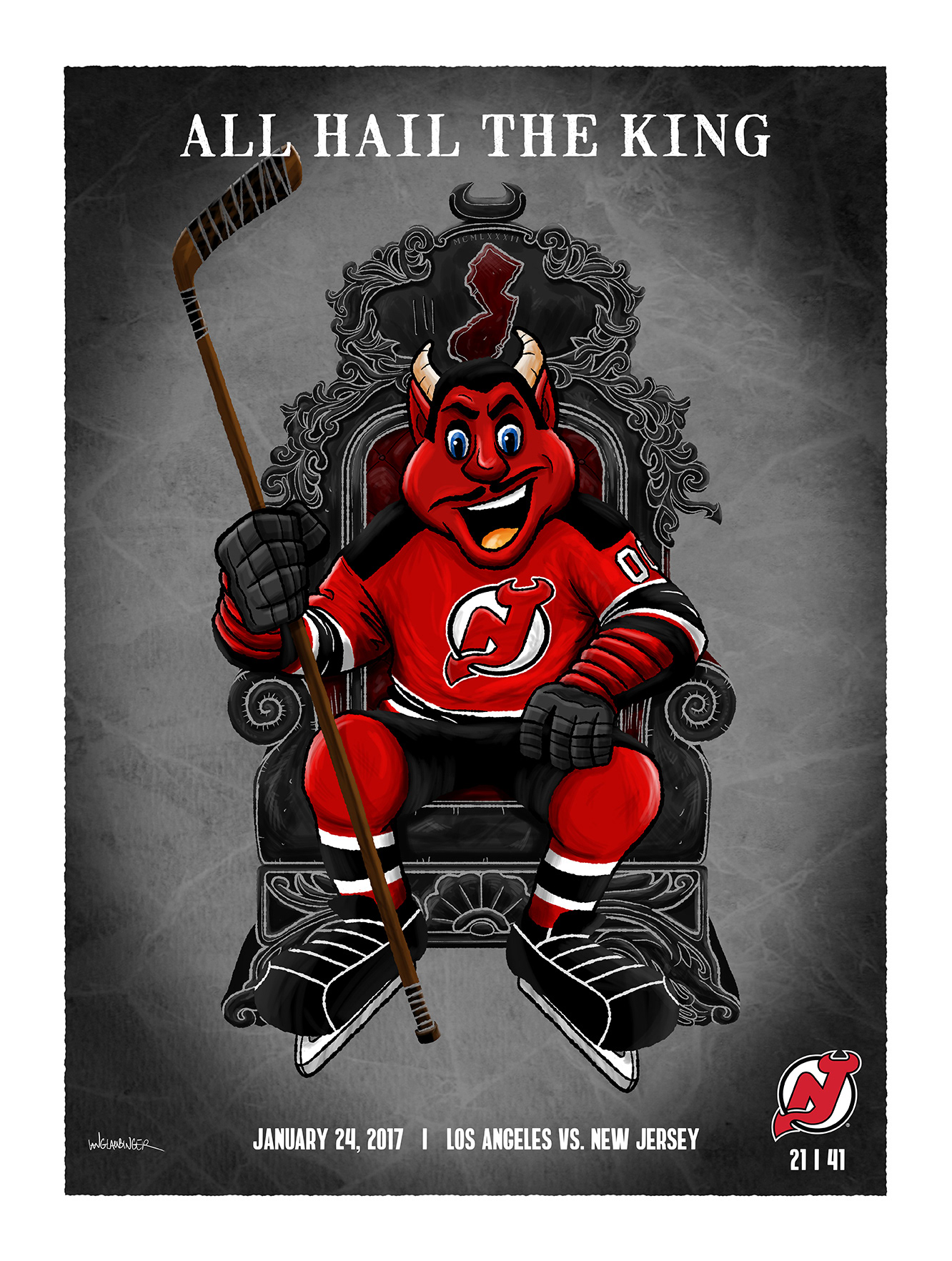 Officially licensed posters created exclusively for the New Jersey Devils during the 2016'-'17 NHL seasons. These promotional posters were part the "Game Day" series where a unique poster is created for all 41 home games for the NHL team; the New Jersey Devils. Each limited edition 18"x24"poster were sold exclusively at The Prudential Center; home of the New Jersey Devils during the corresponding game only.