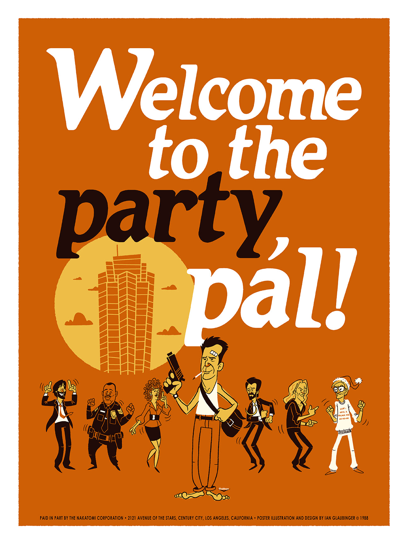 "Welcome to the Party, Pal!", inspired by the cult classic film Die Hard was created exclusively for All Star Press Chicago. Poster details: • 18" x 24" • Edition of 80 • 3 color screen print • 100 lb. Cougar White cover stock
