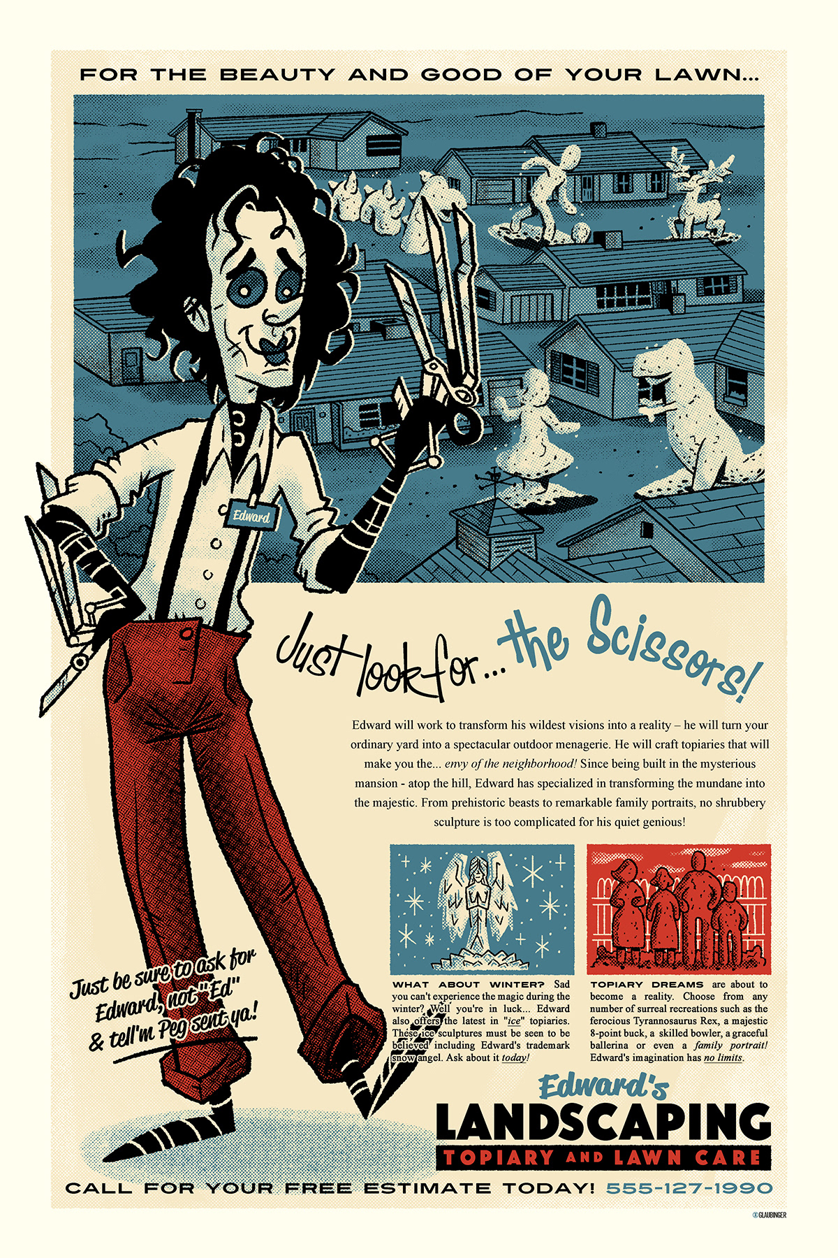 Limited edition screen print from the Gallery 1988 show Product Placement. Inspired by one of my favorite Tim Burton movies, Edward Scissorhands starring Johnny Depp and Winona Ryder.