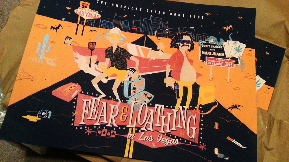 Private commission based on the Hunter S. Thompson movie; Fear and Loathing in Las Vegas. 24"x18" - 6 color screen print - Regular and Variant (with metallic inks)