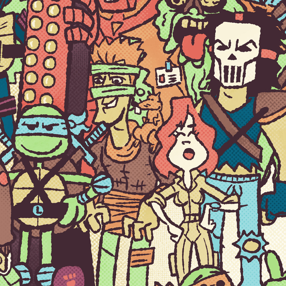 Limited edition giclee print for the Gallery 1988 show Raised by Rainbows. The piece is inspired and a tribute to Kevin Eastman and Peter Laird, the creators of the Teenage Mutant Ninja Turtles.