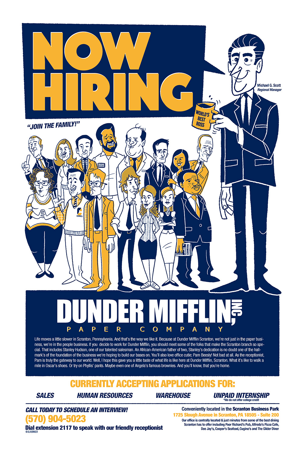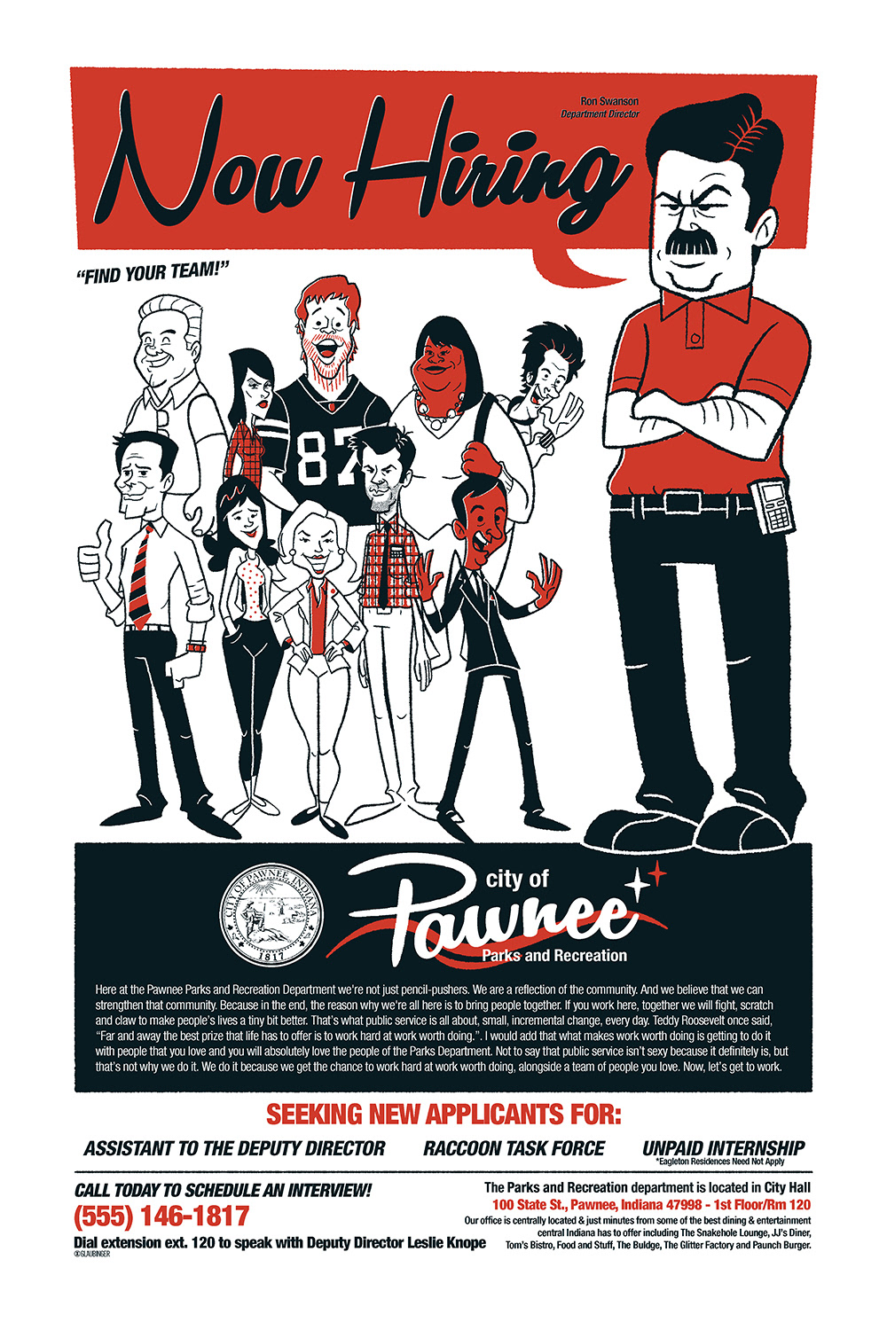 Companion "Now Hiring" prints featuring NBC sitcoms The Office and Parks & Recreation.