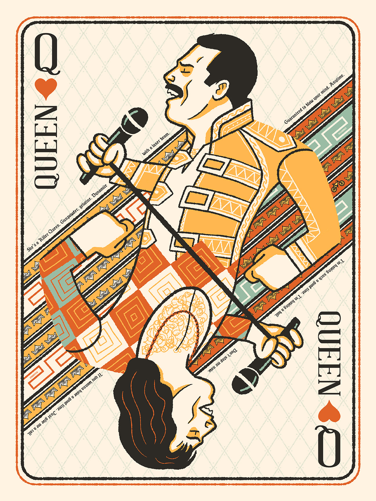 Limited edition screen print inspired by one of my favorite musicians and bands, Freddie Mercury and Queen.
